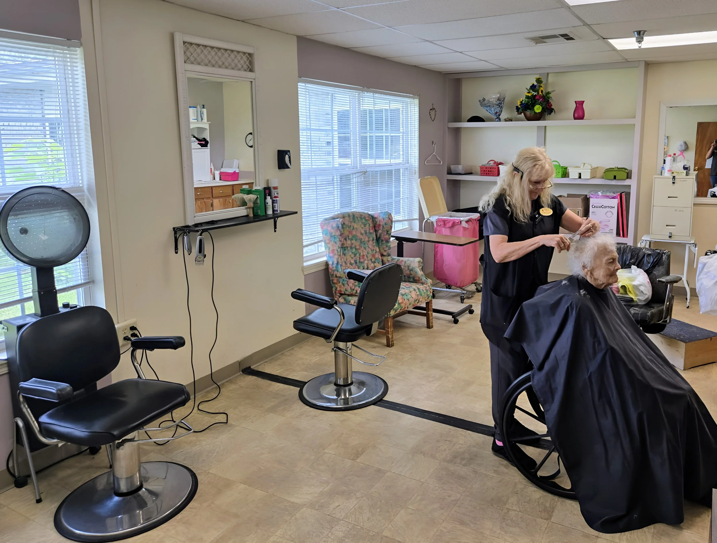 Our in-house beauty shop prioritizes every resident’s comfort and style. Each resident gets the time and attention to feel pampered and refreshed.